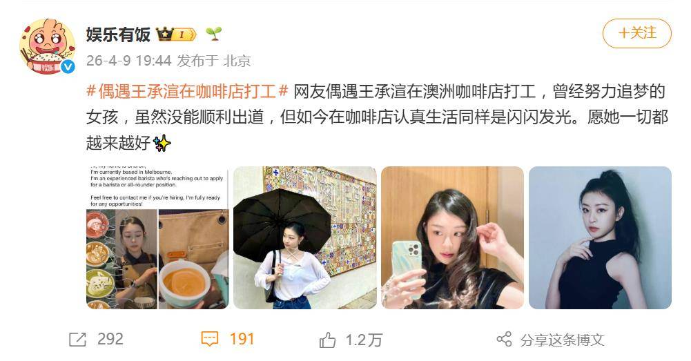 据网友爆料,这已不是王承渲第一次在澳洲被偶遇从事普通工作。早在2025年,就有人发现她在当地售卖冰淇淋。此次咖啡店打工,似乎是她选择延续这种平凡、自在生活状态的延续。这一选择,也与她经纪公司TPG文创娱乐在2024年11月宣布暂停其所有演艺工作的决定相呼应,被外界描述为一种“平静自在”的回归。